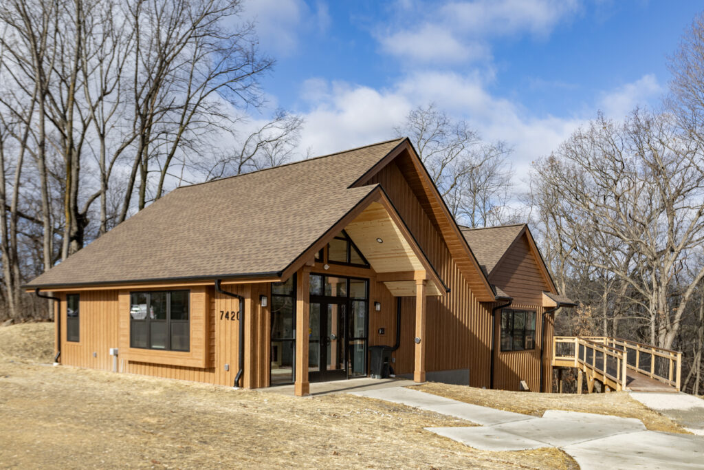 The Welcome Center is a new construction building on the grounds of The Conservancy’s healing garden and nature preserve in Franklin. Situated in the natural landscape behind Ascension Medical Center, the Welcome Center houses visitor information, accessible gathering spaces, administrative offices, and has views of the surrounding woods and glacial lake to people with nature for healing, learning, and renewal.